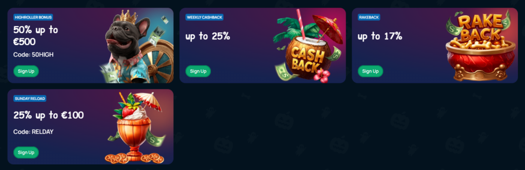 | High Roller Deposit | €500 | Min €300 deposit, 50% match |
