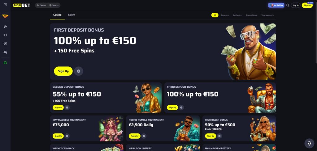 The third deposit mirrors the allure of the first, featuring another 100% bonus up to €150, ensuring that players have ample funds and opportunities to explore the extensive library of games available on BDMBet.