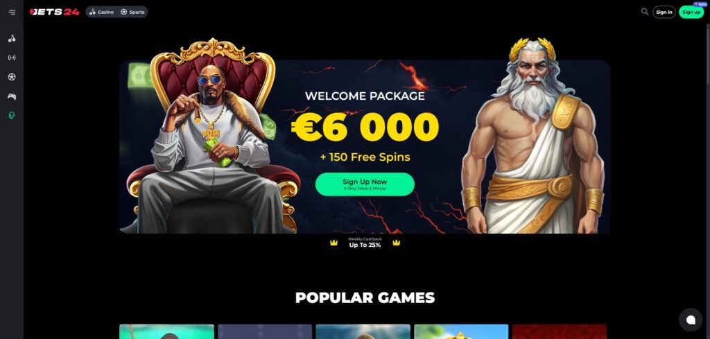 Bets24 initially captures interest thanks to its massive welcome bonus and diverse game selection. The platform features a modern design focused on user convenience, allowing seamless navigation through all sections with just a few clicks. As a newcomer to the market, it strives to attract an international audience by offering multiple payment options—including bank cards, leading digital wallets, and cryptocurrencies—ensuring flexibility for both deposits and withdrawals.