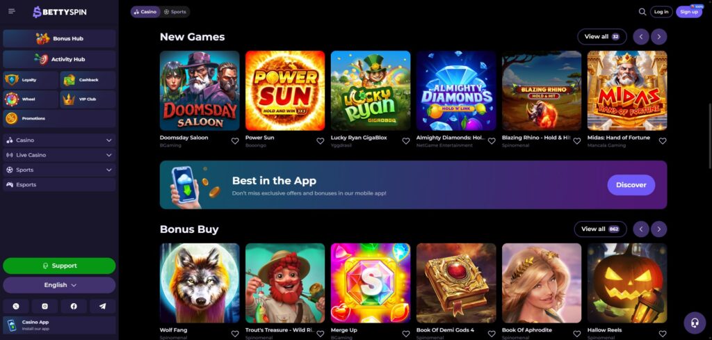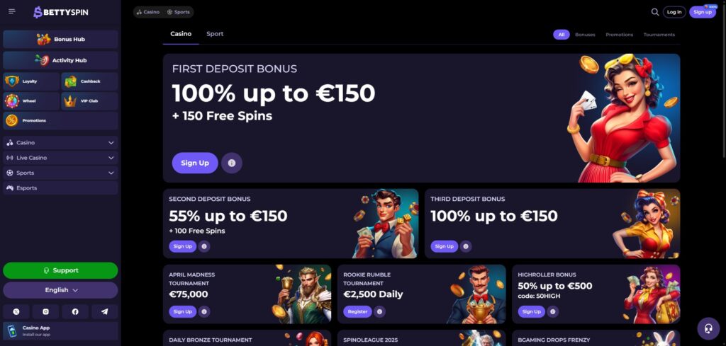 For newcomers, BettySpin unveils its generosity through two distinctive packages tailored for those inclined towards either casino or sports betting. Players must decide which realm suits them best as they cannot claim benefits from both simultaneously. These welcome deals stretch over three deposits, accumulating up to €450 along with 250 free spins specifically for casino fans.