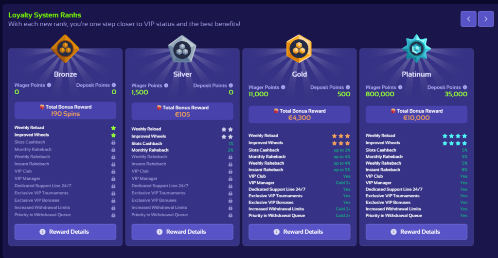 Active participation unlocks further rewards thanks to Browinner’s tiered loyalty program. Four status levels—Bronze, Silver, Gold, and Platinum—grant increasing rakeback percentages, access to exclusive promotions, and faster support response times.