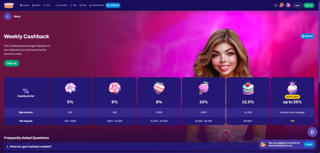 Availability and responsiveness are the watchwords of CandySpinz’s customer support. Whether addressing concerns via a 24/7 online chat or email, the team guarantees quick and efficient solutions to any potential issues. Unfortunately, phone support is not available, but the quality of other options largely compensates for this drawback.