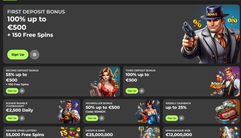 The bonus system is both generous and diverse. Players benefit from weekly cashback deals on net losses, high roller perks for larger deposits, and a friend referral incentive worth up to €350. These extras significantly enhance play value and help extend bankroll longevity for regular participants.