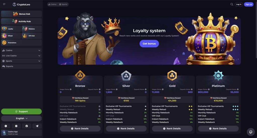 Loyalty members benefit from weekly reload bonuses, free spins, and exclusive tournament entries. Unlike many competitors, where VIP programs are invitation-only, Cryptoleo democratizes its approach, allowing every player the potential to achieve VIP status.