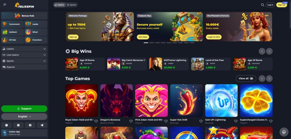 Getting started with Felixspin Casino is remarkably simple. The registration process takes just a few minutes, smoothly integrating new users into an interface designed for easy navigation. At the main page’s top right corner, players will find a robust search feature. This tool allows individuals to quickly locate their favorite games or explore offerings from specific developers.