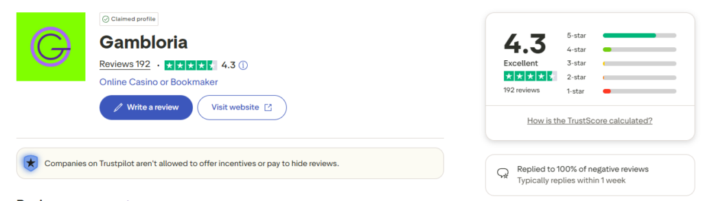 Gambloria might not be the most famous name in the industry yet, but their players are among the happiest. A quick glance at Trustpilot shows a brand that cares about its community.