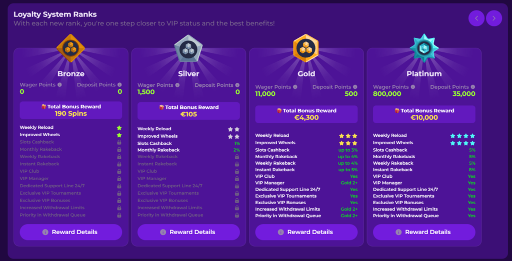 | Loyalty rewards | Tiered by consistent play | Bonus rules apply |