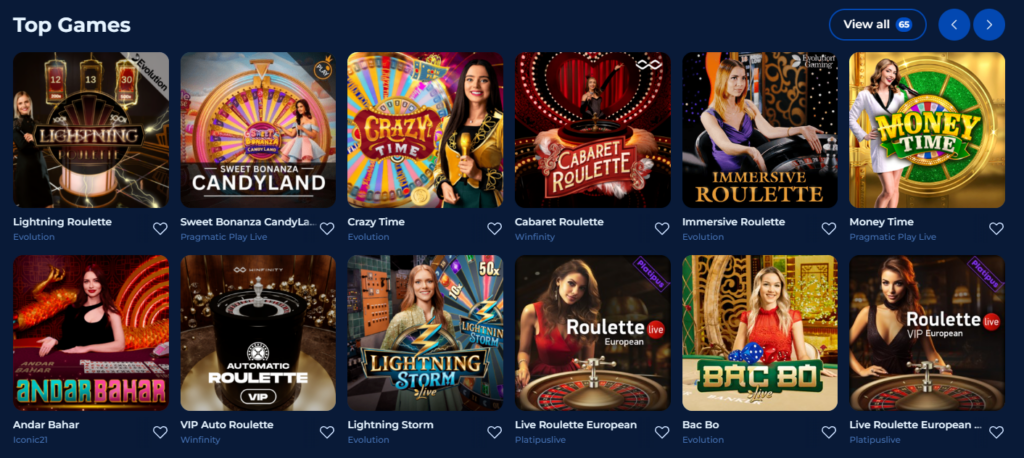 Fans of classic casino moments will appreciate the live section, which covers iconic table games such as roulette, blackjack, baccarat, and poker: all enhanced by entertaining variations and interactive game shows.