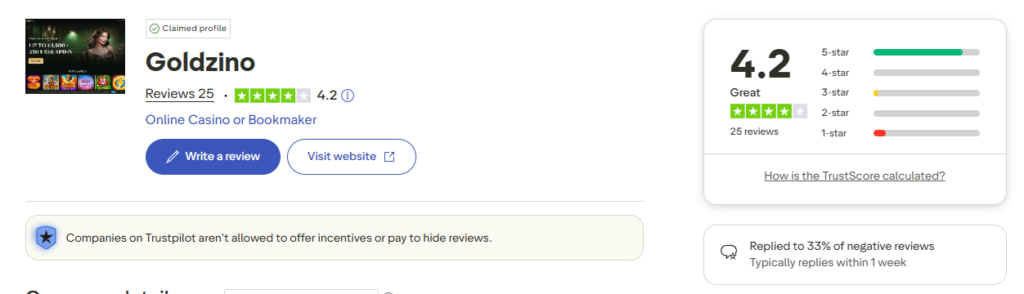 It may not be the biggest name in Vegas, but Goldzino is quickly making a name for itself online. The growth in positive Trustpilot reviews is impressive.