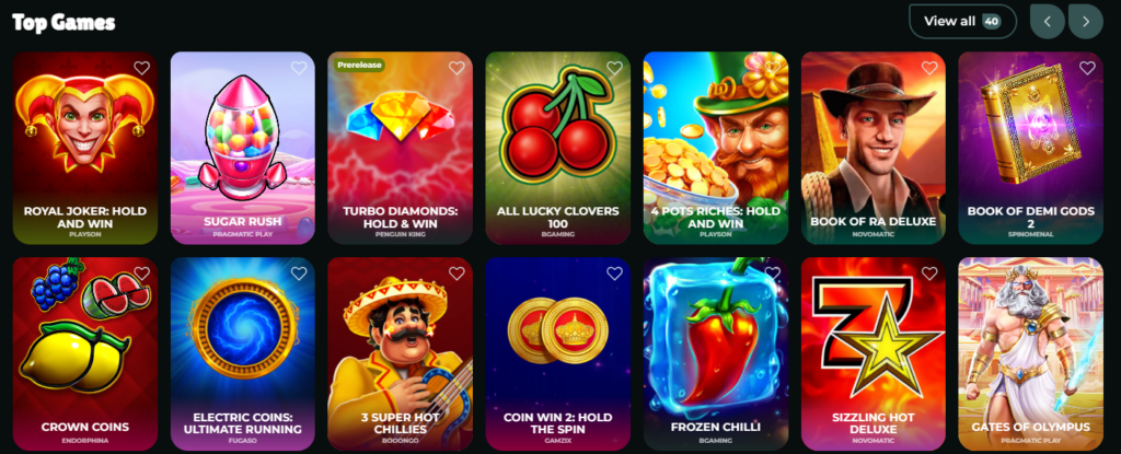 - 🎰 Slot machines – from timeless favorites to the newest launches