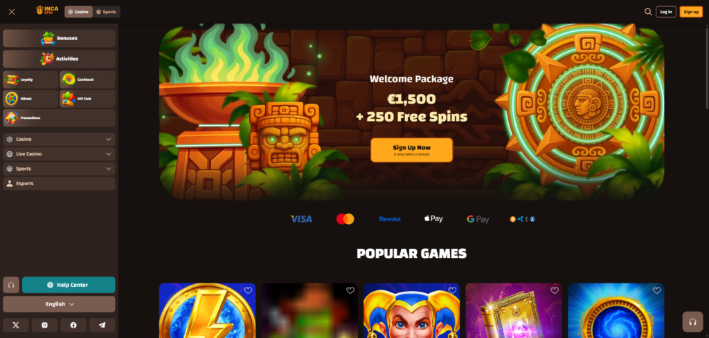 Modern players expect fast transactions and flexible banking methods. Incaspin meets these needs by accepting all major payment types, including digital wallets, traditional bank cards, and select cryptocurrencies, offering maximum convenience.