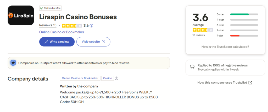 A clunky website kills the fun. Fortunately, Liraspin gets high marks for its user interface on Trustpilot.