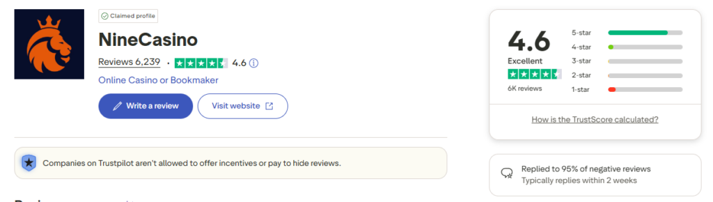 It is easy to spot fake reviews. But looking at the Trustpilot page for Nine Casino, the feedback feels authentic and grounded in reality.