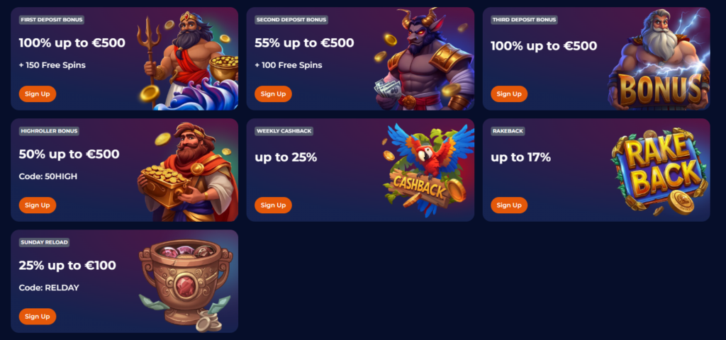 The benefits extend beyond the first deposit, as players can enjoy a 55% bonus on their second deposit, reaching up to 150 EUR with an additional 100 free spins. By the third deposit, once again, a 100% match bonus is available, reflecting the casino’s commitment to keeping players engaged over time. These generous bonuses are intended not only to attract players but also to enhance their ongoing journey within the platform’s extensive gaming landscape.