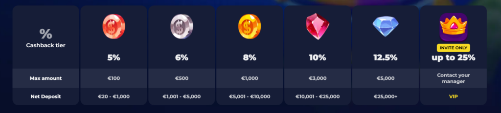 - ♻️ Daily Cashback: Integrated with slot gameplay, max value noteworthy