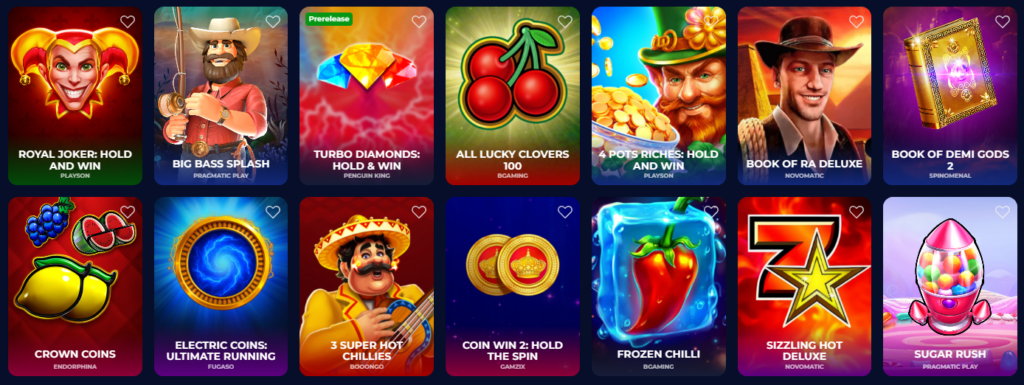 | Slots | Big Bass Splash, Chaos Crew, Money Train |