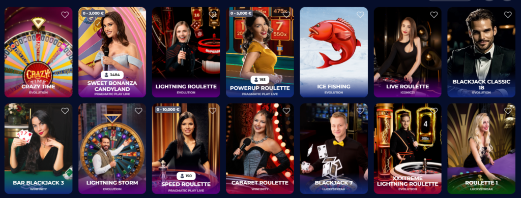 The platform is renowned for its extensive range of slot games, boasting over 5,500 titles. Favorites among users include engaging slots like Big Bass Splash and Chaos Crew. In addition to slots, live casino games such as Mega Ball and Crazy Time attract gamers looking for real-time thrillers.