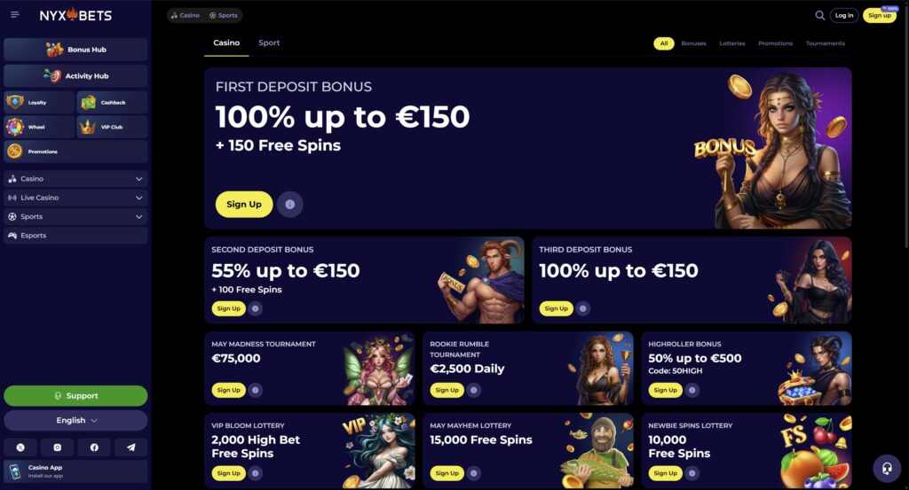 NyxBets entered the scene in 2025, swiftly carving a niche in the highly competitive online gambling market. Managed by Greenwhich N.V., it benefits from the company’s extensive experience in the gaming industry. The platform boasts cutting-edge technology and a modern interface designed to enhance the user’s betting experience.