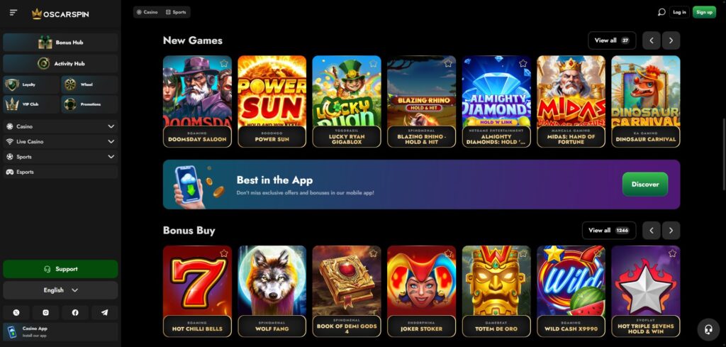 Oscarspin sets itself apart with its impressive library of over 6,000 games sourced from renowned providers. This diverse collection caters to all tastes, whether one is looking for classic slots, table games, or innovative live dealer experiences. Featuring games like “Bac Bo Evolution” and “Energy Joker: Hold and Win,” there’s always something new and exciting to try out on the platform.