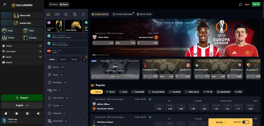 Oscarspin is also a sportsbook :