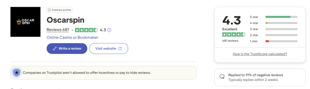 The biggest question every player has: “Will I get my winnings?” We looked at Oscarspin’s Trustpilot page to find the answer, and the results are reassuring.