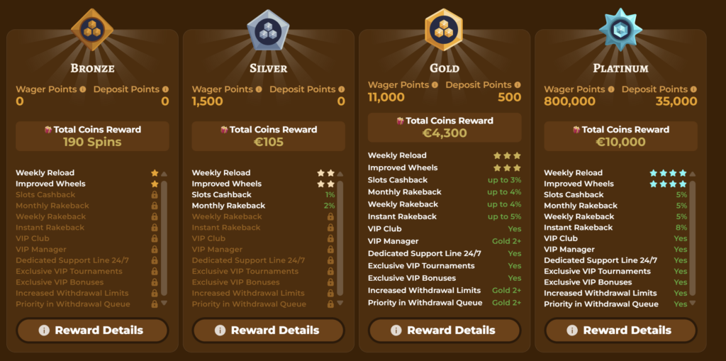- 🎉 Level-up bonuses reaching €10,000 for top-tier members