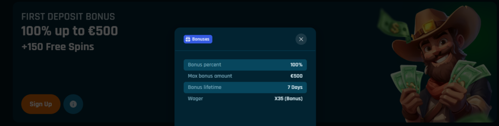 - 💸 First deposit doubled (up to €500) plus 150 free spins