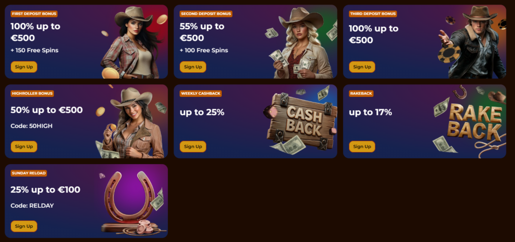 Many platforms attract new members with generous welcome packages, but at RodeoSlot, the range of bonuses and promotions extends even further. More than 25 active deals can be found at any time, featuring reload bonuses, cashback rewards, up to 17% rakeback, combo bet boosts for sports, and network tournaments offering pooled prizes.