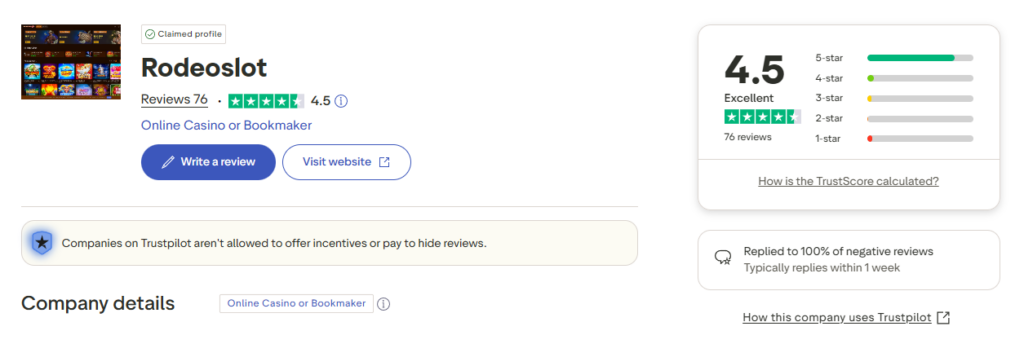 While our review is thorough, the collective voice of hundreds of players is even more powerful. On Trustpilot, Rodeoslot has secured an impressive rating, outperforming many established competitors.
