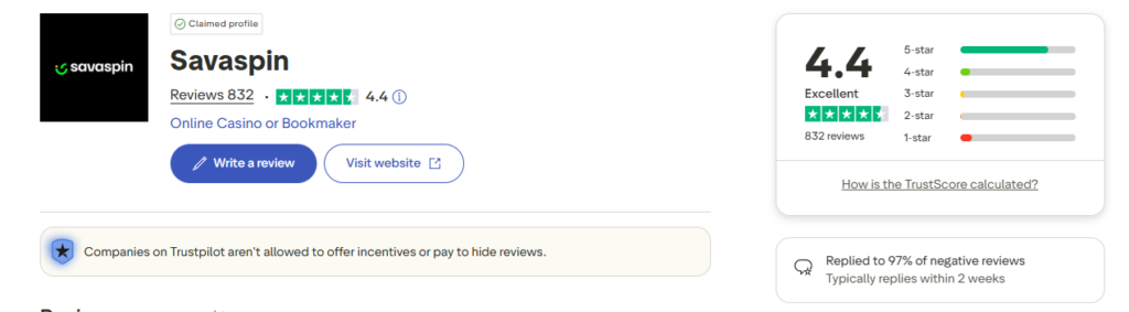 The ultimate test of a casino’s quality is: “Would you recommend it to a friend?” Looking at the high score on Trustpilot, the answer for Savaspin is affirmative.