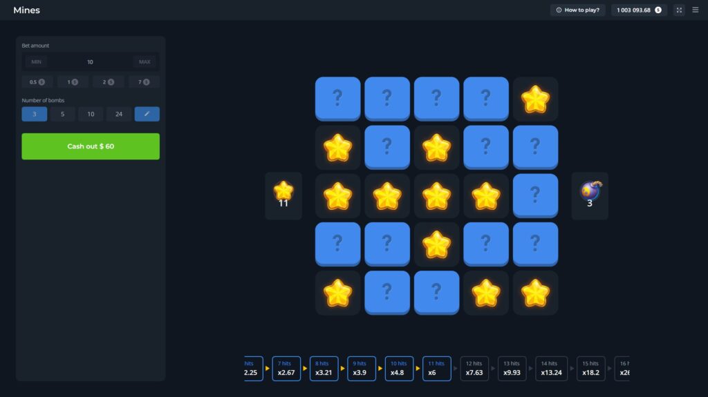 The multiplier grows based on the number of mines. More mines mean higher risk but bigger rewards. It is a direct mathematical correlation.