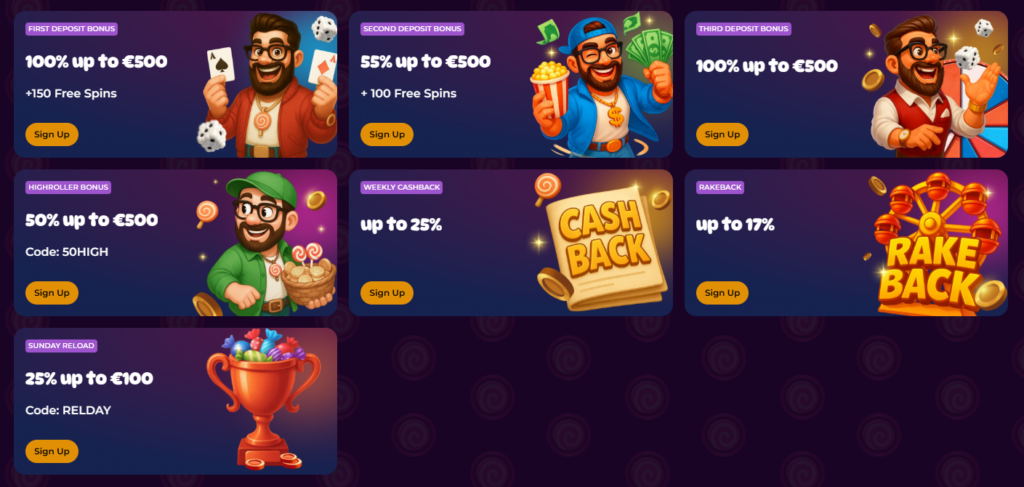 - 🔄 Reload bonuses – Regular deals such as Sunday reloads (25% bonus up to €100)