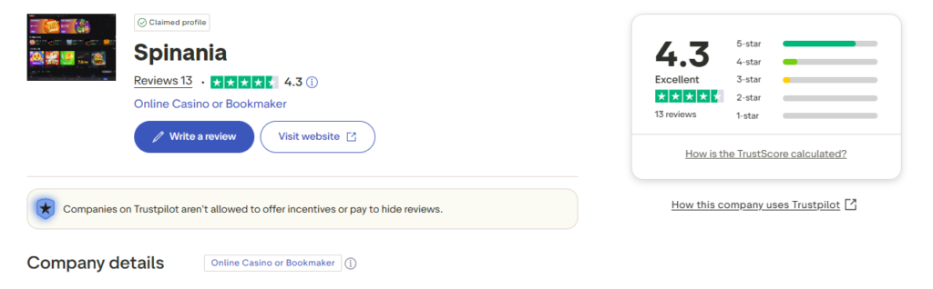 Marketing is one thing, but what players say to each other is what truly matters. On Trustpilot, the community sentiment for Spinania is overwhelmingly positive.