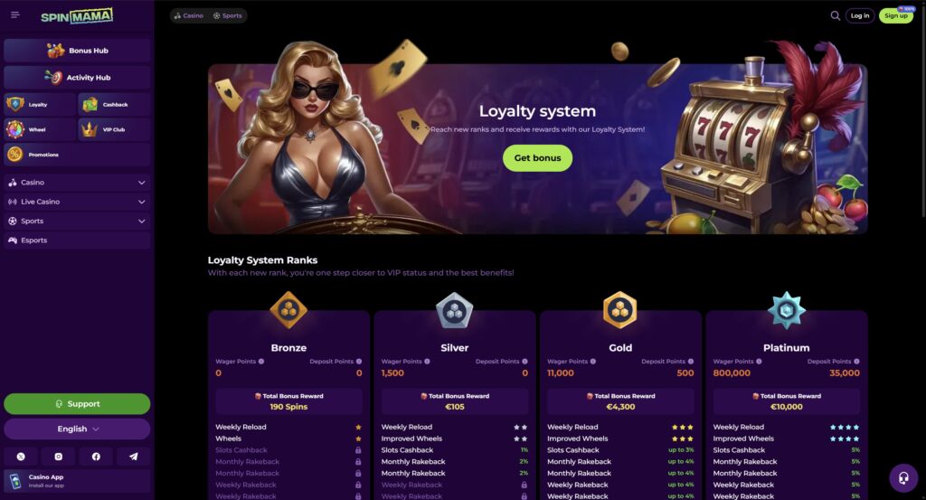 Advancing through the loyalty tiers enriches user engagement narratives at Spinmama, going beyond simply accruing bonuses.