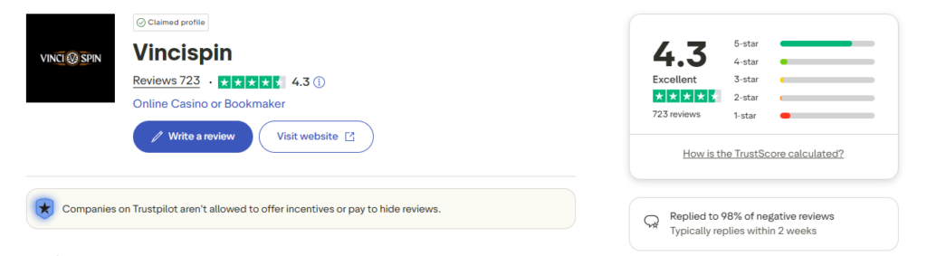 In the online gambling world, seeing a green score on Trustpilot is incredibly rare. Most players only write reviews when they are angry. That is why Vinci Spin stands out from the crowd.