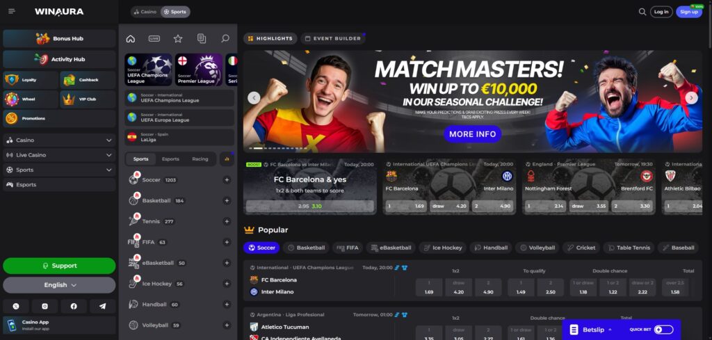 Winaura doesn’t stop at typical casino offerings; it includes a sportsbook section where bettors can wager on a plethora of sports events. Enthusiasts can place pre-match and live bets on major competitions like the UEFA Champions League and NBA, catering to global sports fanatics.